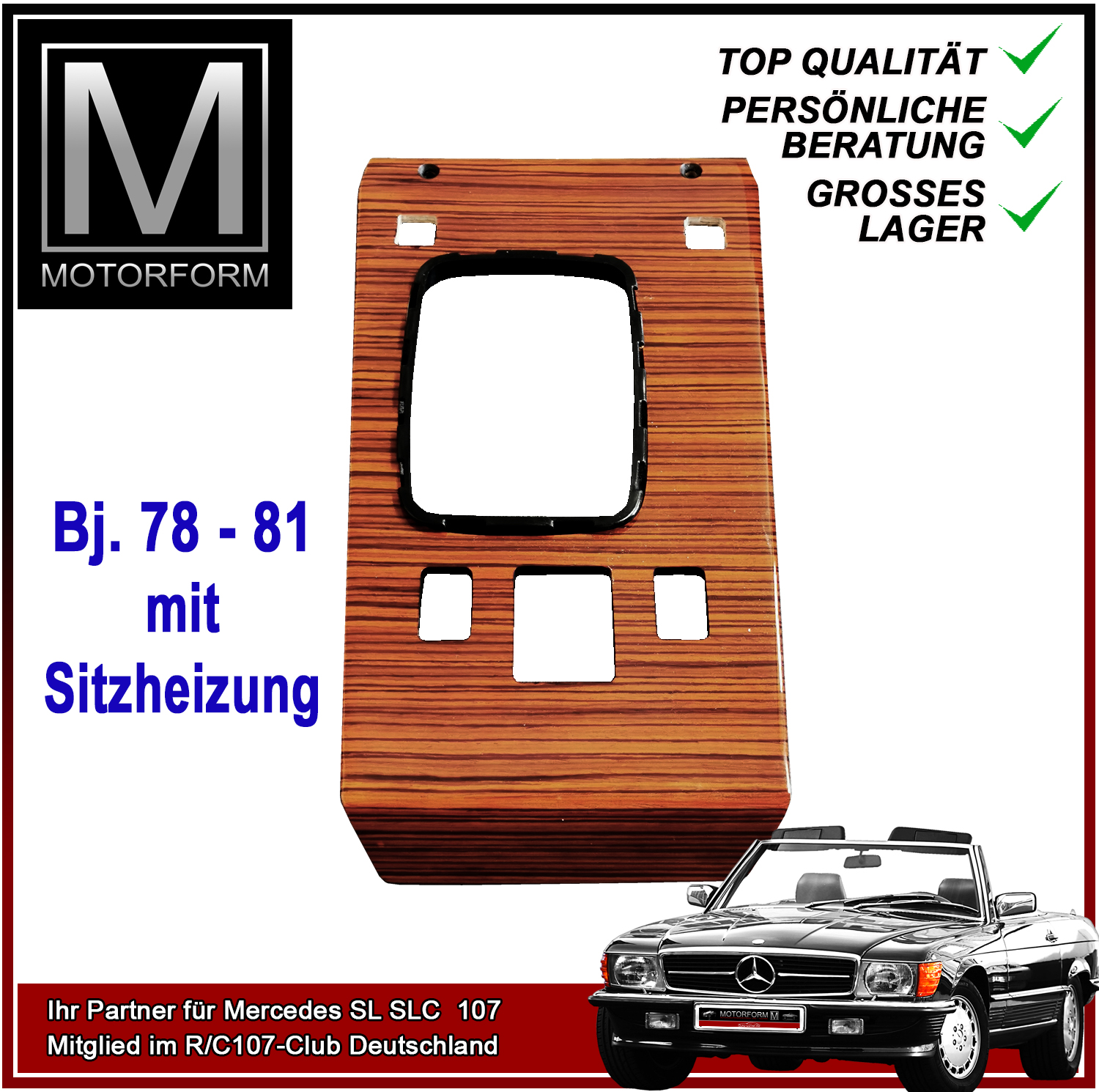 Zebrano Holz Blende Mercedes SL R107 mit Sitzheizung