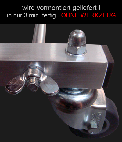 Durch die hochwertigen Industrierollen ist ein Bewegen des Hardtops auch auf nicht optimalen Böden möglich.